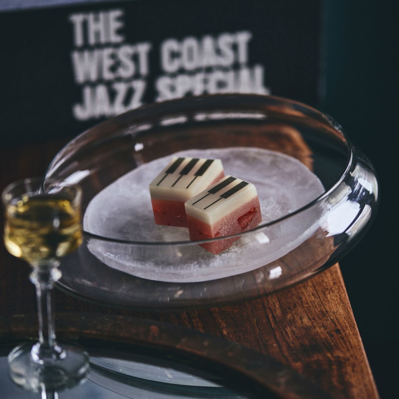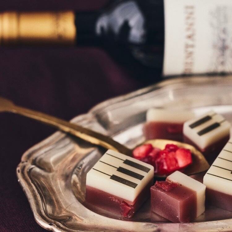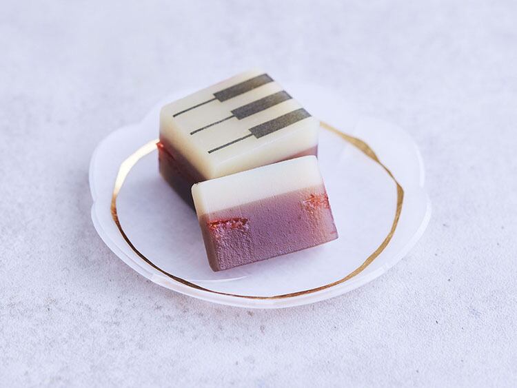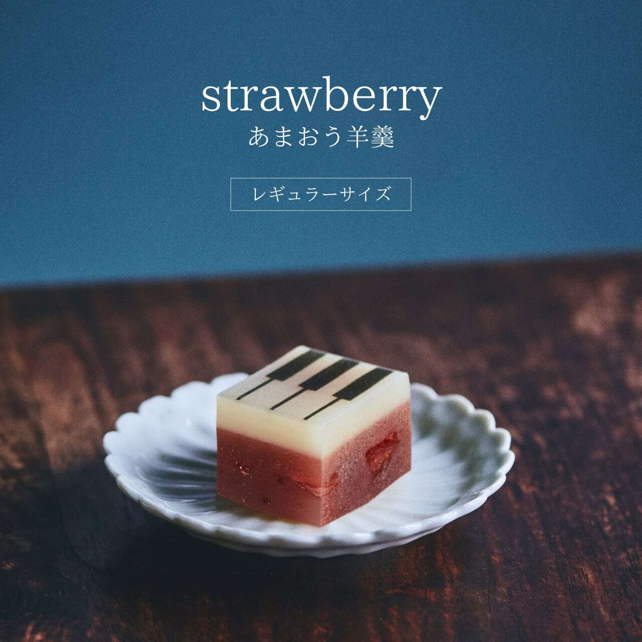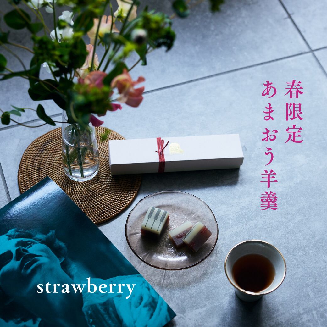 あまおうのピューレとドライストロベリーを白餡にたっぷりと練り込んだ、ジャズ羊羹「strawberry」甘酸っぱい苺の羊羹。