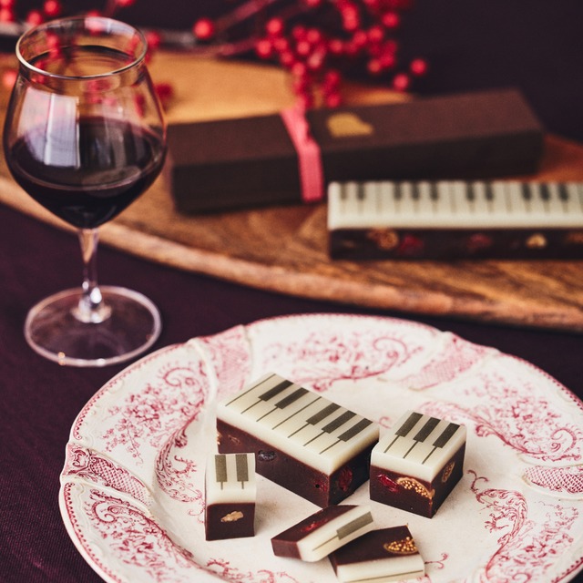 冬の定番「ショコラ」は、白餡にクーベルチュールチョコレートをたっぷりと練り込み、ドライチェリー、いちじく、レーズンをふんだんに混ぜ合わせた贅沢なチョコレート羊羹です。